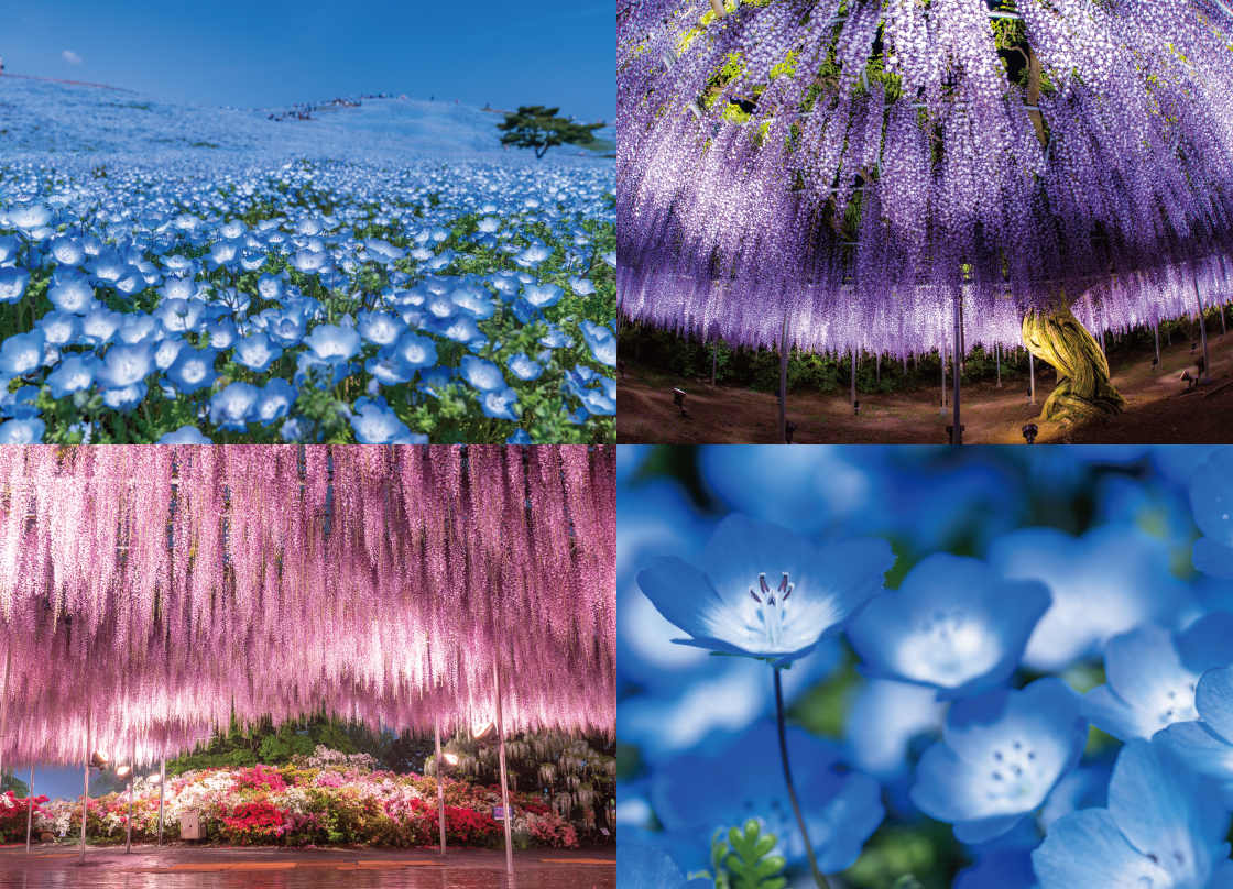 東京発着 青の絨毯!ひたち海浜公園で絶景「ネモフィラ」&ライトアップされた大藤棚もご堪能!